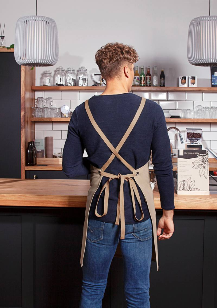 Karlowsky Latzschürze Urban-Nature mit Kreuzbändern und großer Tasche, kieselbeige