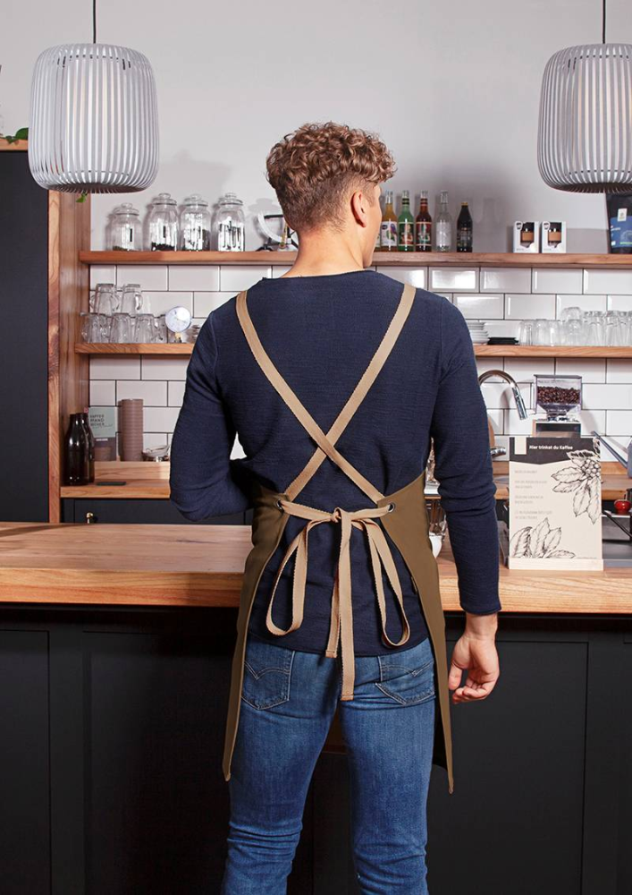 Karlowsky Latzschürze Urban-Nature mit Kreuzbändern und grosser Tasche, zimt